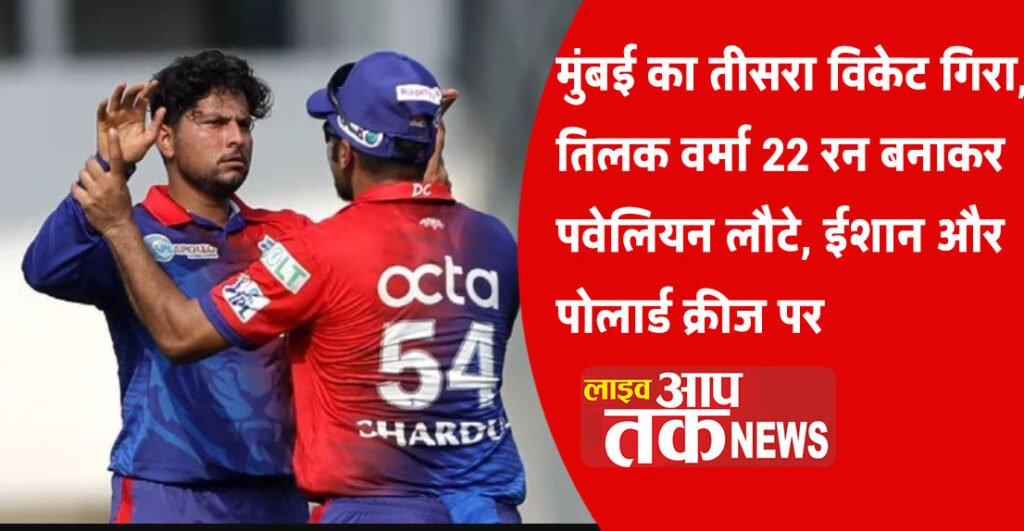 मुंबई का तीसरा विकेट गिरा, तिलक वर्मा 22 रन बनाकर पवेलियन लौटे, ईशान और पोलार्ड क्रीज पर-DC vs MI Live